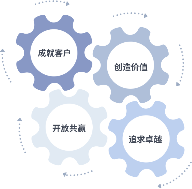 成就客户是一切决策的出发点,创造价值是衡量所有工作的标准,追求卓越是sunbet申搏做事做人的态度,开放共赢是sunbet申搏的格局也是最终的结果。价值观的齿轮环环相扣,推动着组织里的每个人不断向前。